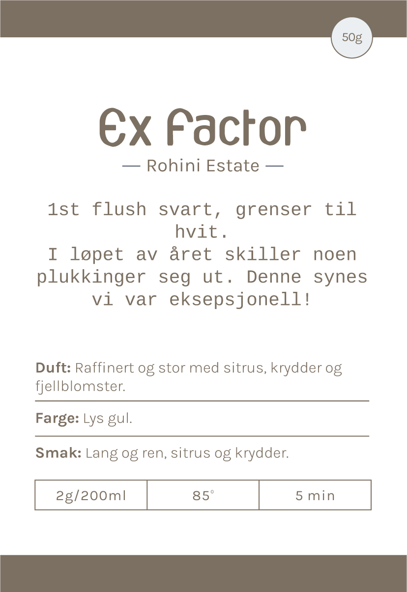 1 st flush, svart, grenser til hvit. I løpet av året skiller noen plukkinger seg ut. Denne