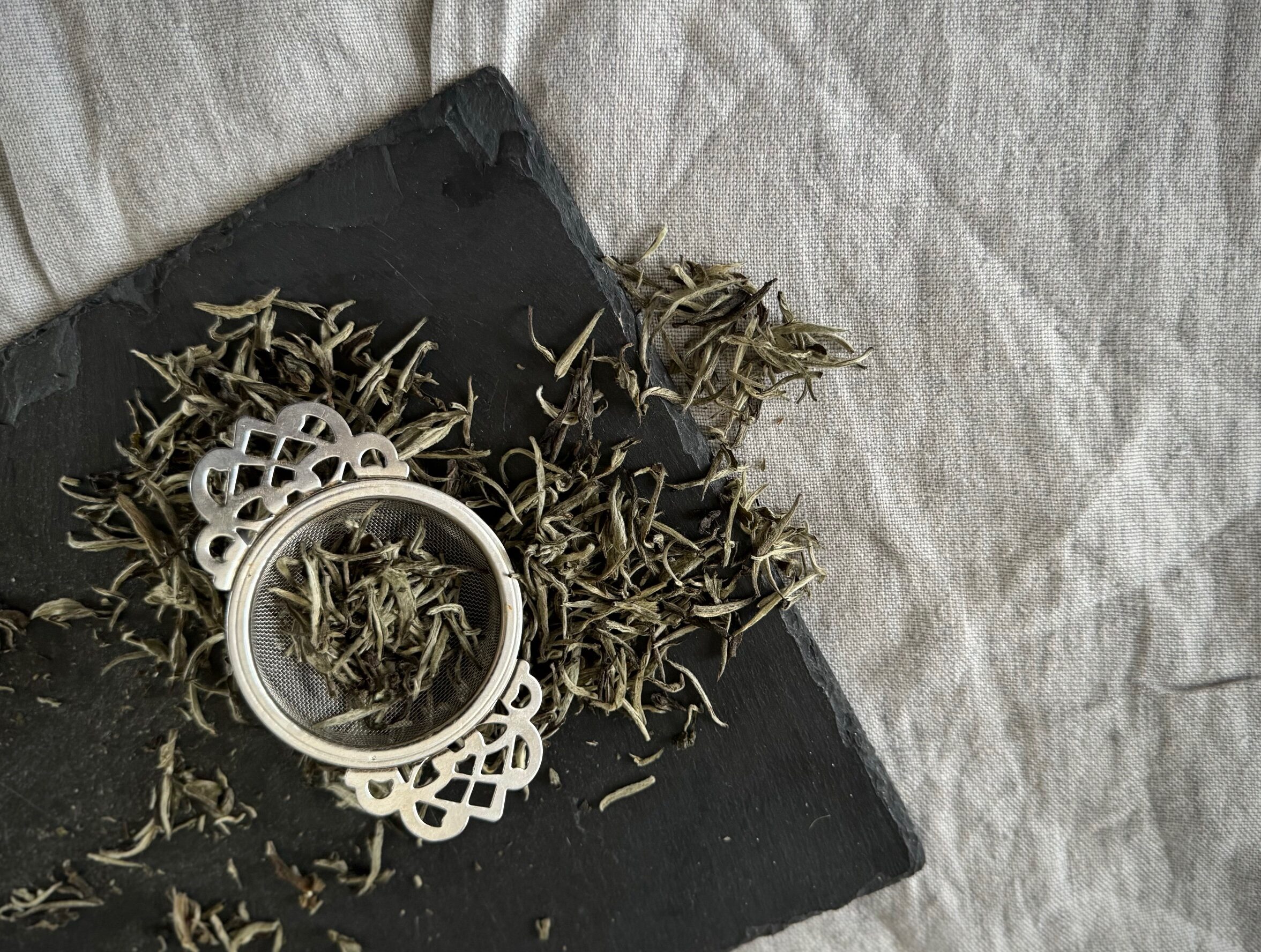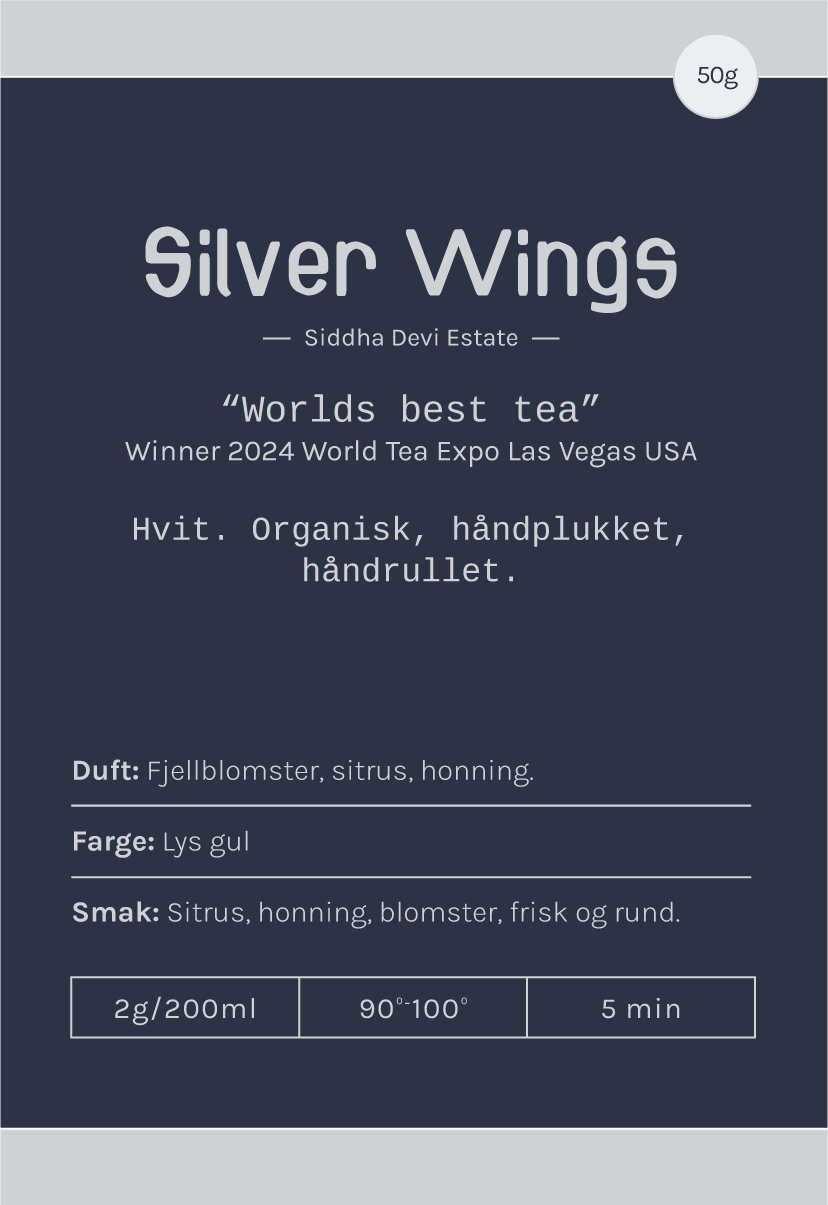 Hvit. Organisk, for det meste ett blad og toppskudd, håndplukket, håndrullet.